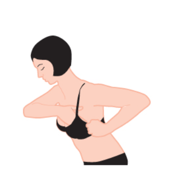 2. Ajustar o peito da seguinte forma: Enquanto agarra com uma mão o aro (na ponta extrema), com a outra mão puxa o seio da axila até ao centro.